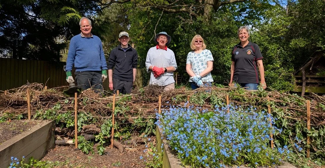 We have created a nature-friendly deadwood fence in the hall garden. This uses old prunings and brushwood to create a natural fence that supports wildlife. It also makes the area safer for children to play in by restricting them from getting into the nettles/brambles at the back of the area.