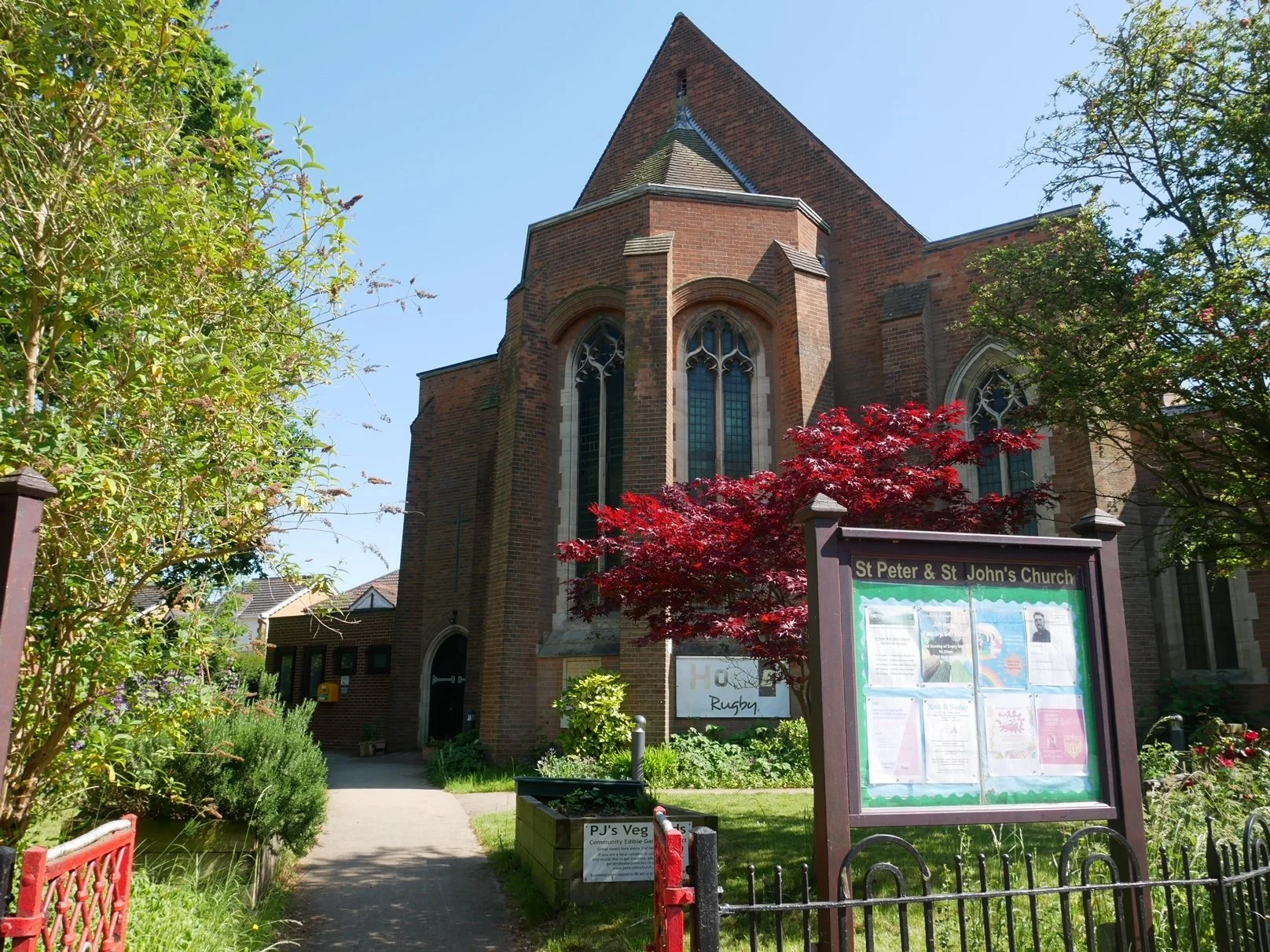 St. Peter & St. John Parish Church, usually known as PJs, is a busy parish church located on the corner of St. Peters’ Road and Clifton Road in the Eastlands Ward of Rugby.